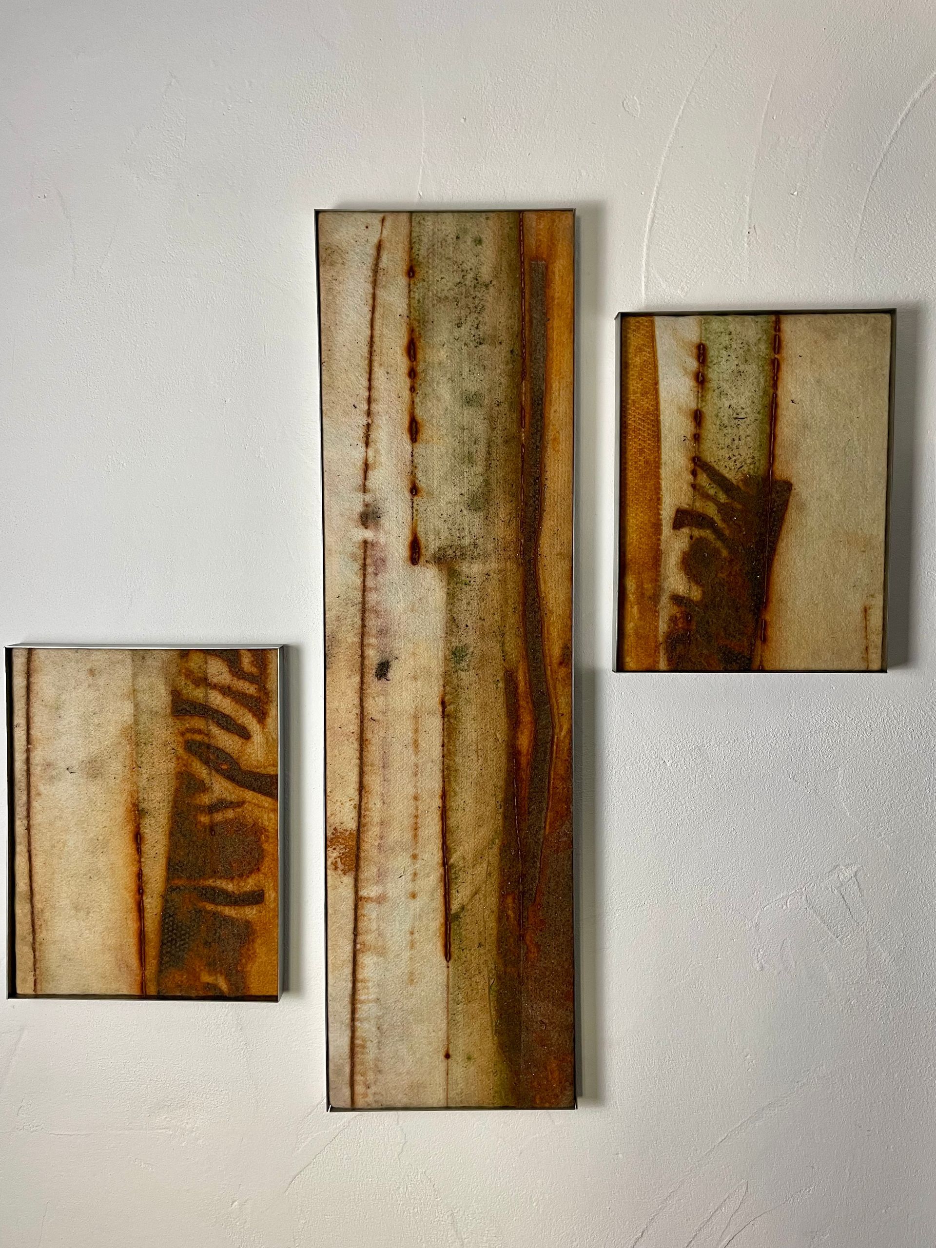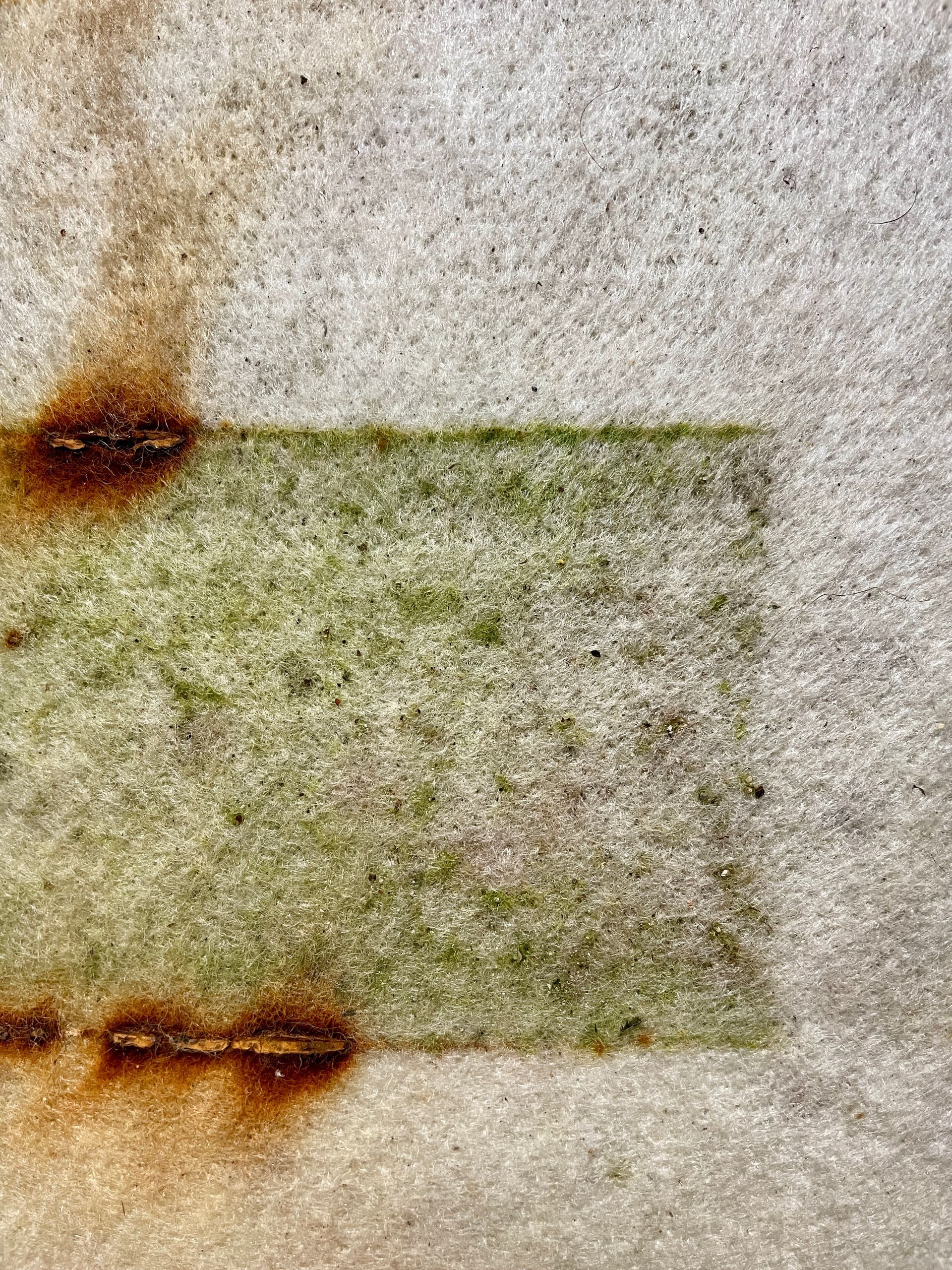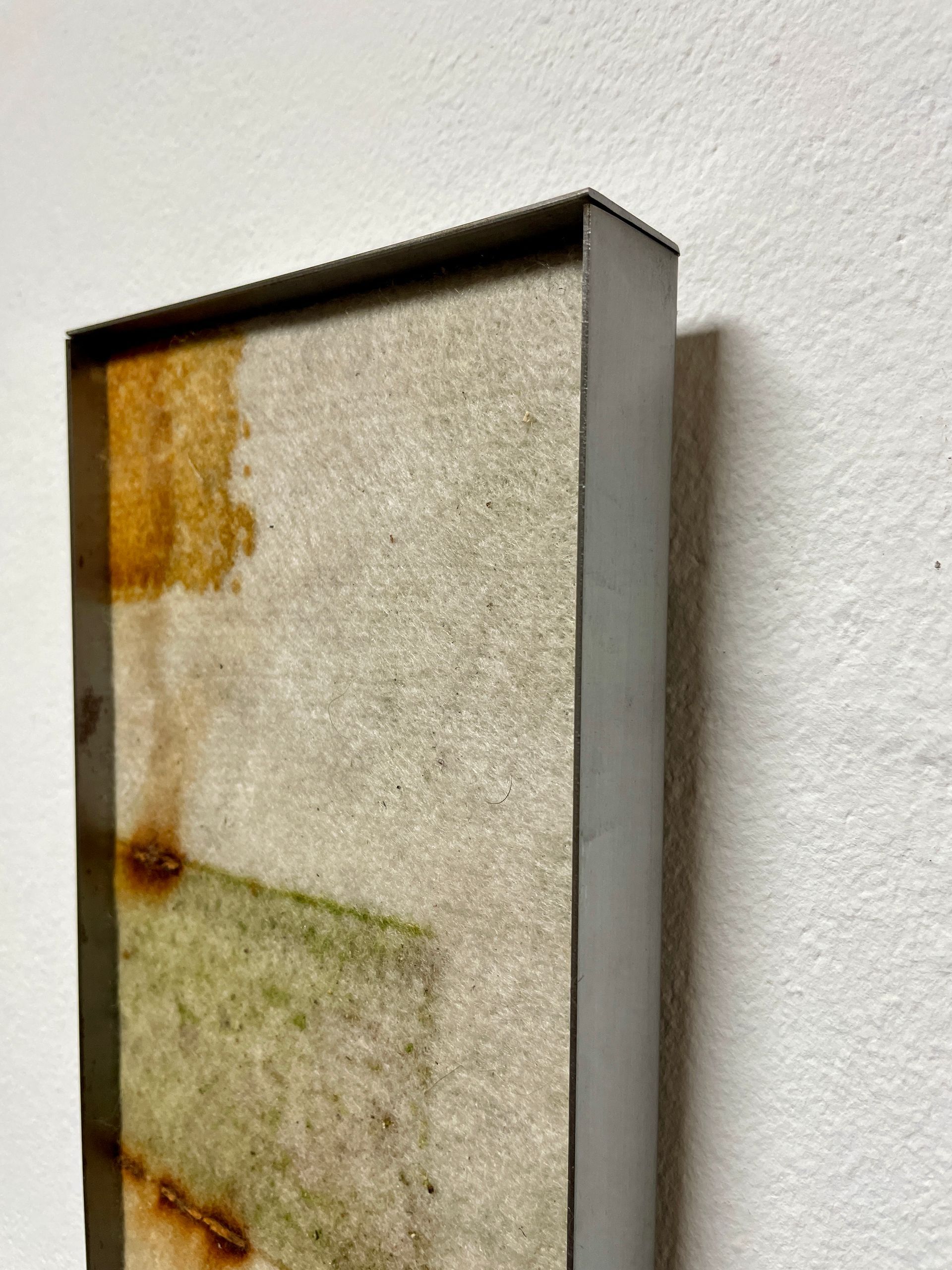 The materials have inscribed themselves: rust as a sign of transience, moss as a trace of life, felt as the bearer of everything. Only thoughts and the hand serve as guides.